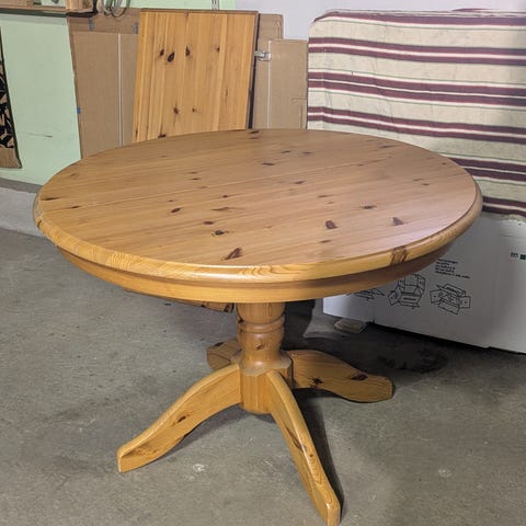 Runt mörkbrunt bord max 120 cm diameter. Liknande som på bilden