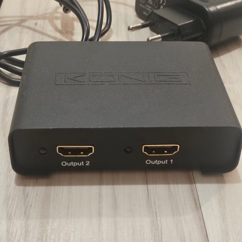 Otestad HDMI splitter, skick enligt bild. Kan ej garantera om den fungerar eller ej då jag inte kan testa den.