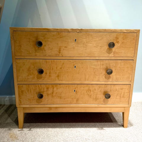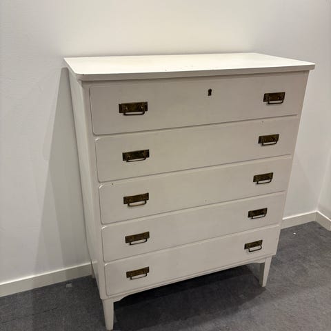 Vit äldre byrå i trä, kärvar lite när man ska dra ut lådorna. D:41 B:100 H:71cm.