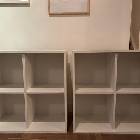 Säljer antingen styck eller som hel sektion av eket förvaringskuber som varit en hel väggsektion/ skivhylla.