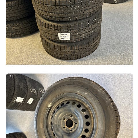 Däck med fälgar med dimension 195/60 R15. Däckens mönster och fälgar visas på bilderna. Produkten består av fyra stycken däck med fälgar.