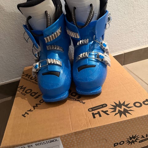 Rossignol barnpjäxor med innermått på 22.5 cm i vitt. Pjäxorna är i mycket fint skick och avsedda för barn.