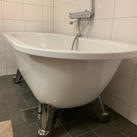 Säljer ett modernt svart badkar i stilren design. Badkaret passar perfekt i ett badrum och ger ett elegant och exklusivt intryck. Utrustat med blandare och handdusch. Använt men i gott skick. Perfekt för dig som vill uppgradera badrummet med ett snyggt och bekvämt badkar.