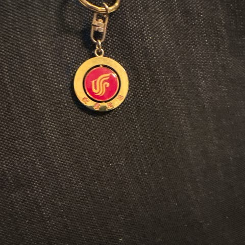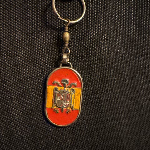 Nyckelring från Australia med guld- och svarta detaljer. Nyckelringen har en rund design med en känguru i mitten och texten "Australia" på framsidan.