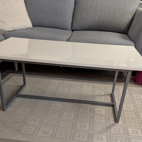 Stort vardagsrumsbord i fint skick. Står på hjul för lätt flytt. 56 cm hög, b 100x100 cm