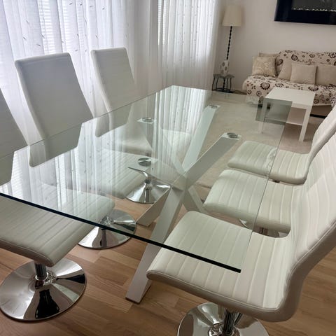 4 snygga vita Mio-stolar + gratis skötselspray (värde 199 kr)