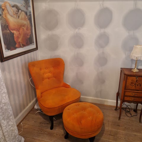 Vacker klassisk Emmafåtölj i mossgrön sammet. Originalklädsel och ben.