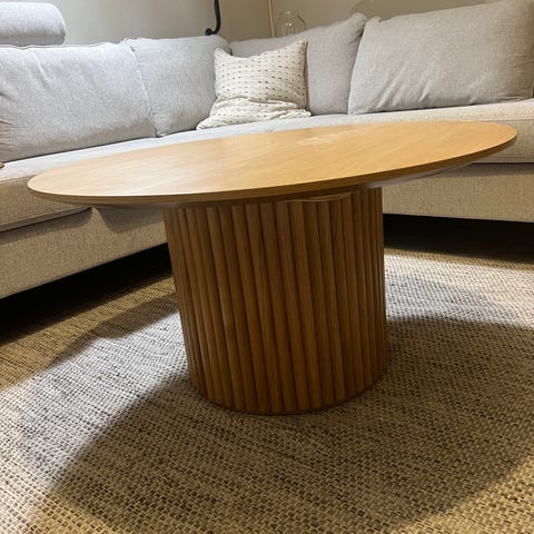 Säljs pga, flytt. Oljad ek, tv bänk, soffbord och mat bord med 6 stolar svensk design, kommer från rök och djurfritt hem!