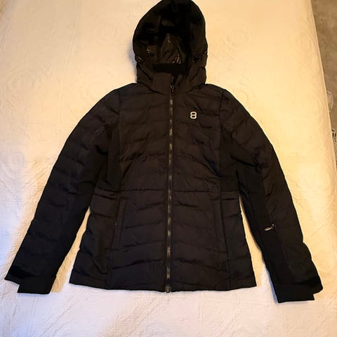 Everest fodrad skidjacka storlek 164 med längre midja, stora sidofickor, liftkortsficka på ena ärmen och en mysig luva som är avtagbar