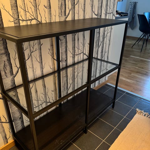 Möbelset med spegel och avlastningsbord i mörkt trä