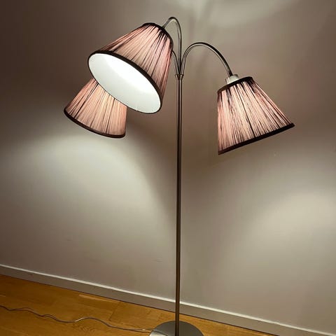 Konfigurerbar golvlampa som ger rejält med ljus. Några synliga märken på skruvfästet som reglerar höjden. I övrigt som ny.