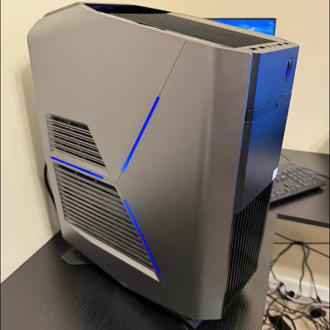 Alienware S24E450 bildskärm med anslutningar på baksidan inklusive DVI och DisplayPort. Skärmen har en svart finish och är designad för datoranvändning.