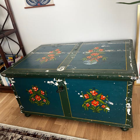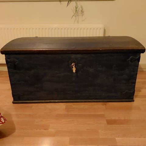 En fin kista. Målad inuti en gång. Väldigt bra förvaring. Billigare vid snabb affär.