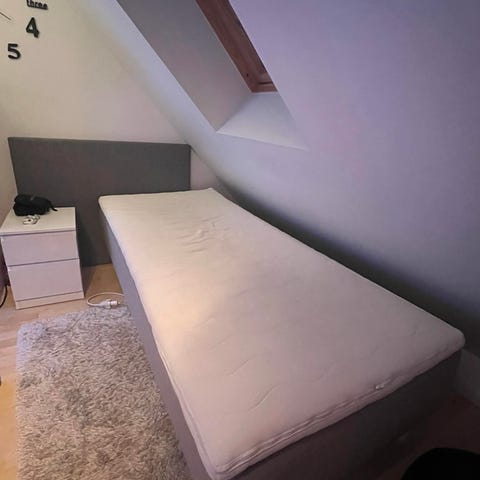 IKEA Skårer säng/resårbotten med ben. Mått 90x200 cm i grå färg. Har mestadels använts som gästsäng så är i jättefint skick - men en liten distinkt blå fläck finns på sidan.