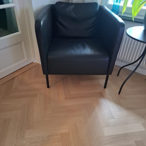 Säljer en svart fotölj i nyskick – ser ut som ny!