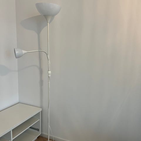 Ge rummet nytt ljus! Vit golvlampa i bra skick, fungerar perfekt och passar alla inredningsstilar. Få den nu innan den försvinner!