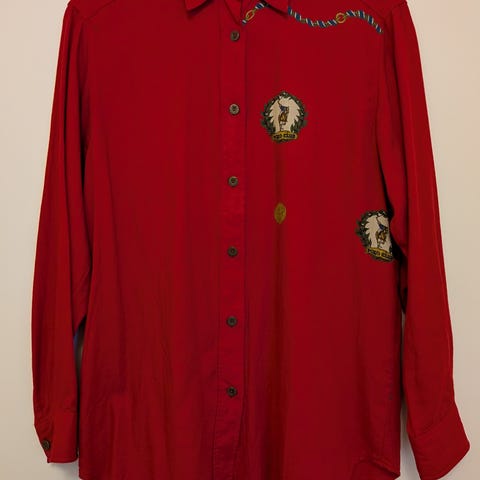 Unik svart skjorta från Kappahl i storlek 38, med långa ärmar och röda asymmetriska blommönster fram och på sidan. Superfin, men för liten för mig tyvärr.
