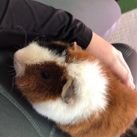 Man får marsvinen tillsammans med buren, en rätt stor, något ranglig då vår katt tyckte den var rolig att hoppa på, men fullt funktionsduglig (köpte den för 500), samt vattenflaska, leksak och även lite hö, pellets mm