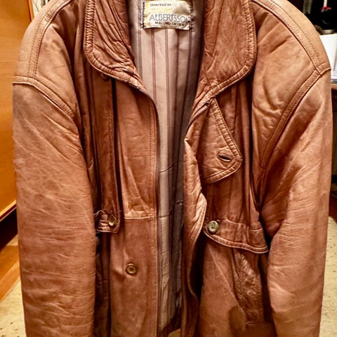 Fin herr läderjacka med fransar i brunt läder. Storlek Medium, Bra passform.
