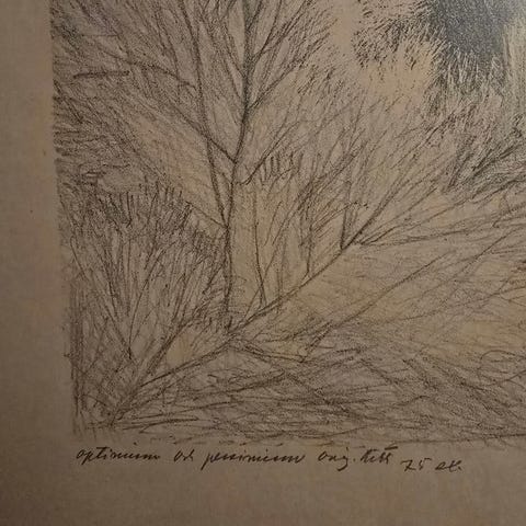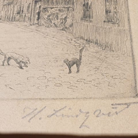 Gulnad, pappret något vågigt. Rammått 56,5 x 43 cm.