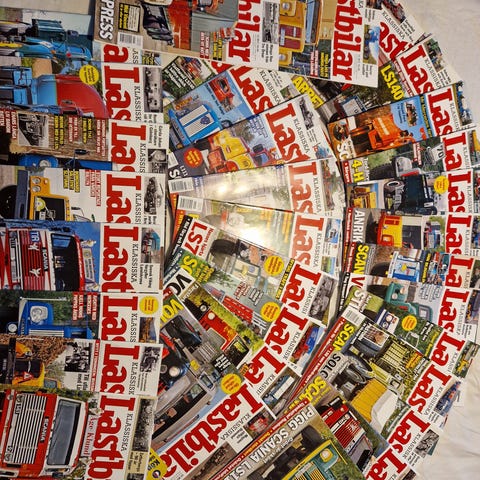 Unik Samling av tidskrifter med fokus på teknik, lastbilar och transport, inklusive titlar som Teknikhistorien, Klassiska Lastbilar och Trailer. Tidskrifterna innehåller artiklar om lastbilsmodeller, teknikhistoria och transportbranschen.