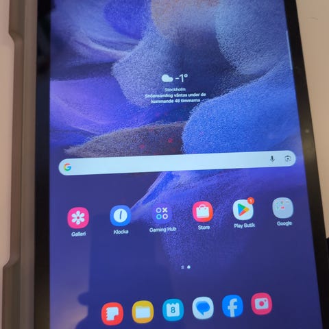 Samsung Galaxy Tab A7 surfplatta med 32 GB lagringsutrymme. Medföljer både skal (se bild) samt ett härdat glas skydd som sitter på.