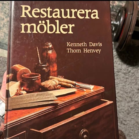 Boken "Stora boken om att vårda och renovera" innehåller information och instruktioner om underhåll och renovering av olika föremål och ytor. Den täcker tekniker och metoder för skötsel och reparation, illustrerat med bilder som visar exempel på arbete och verktyg.