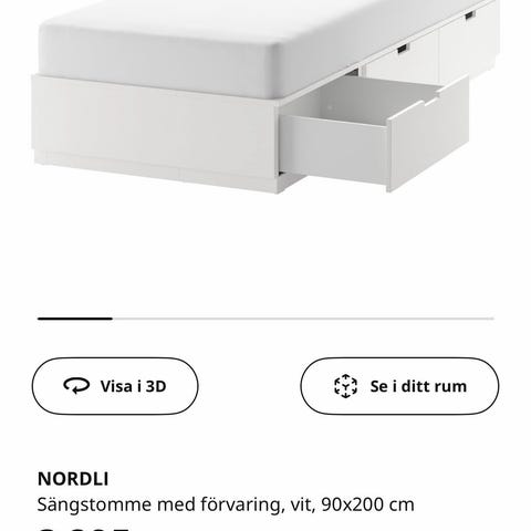 Ikea Nordli vit säng i trä med förvaring, 3 lådor, inkl madrass i bra skick