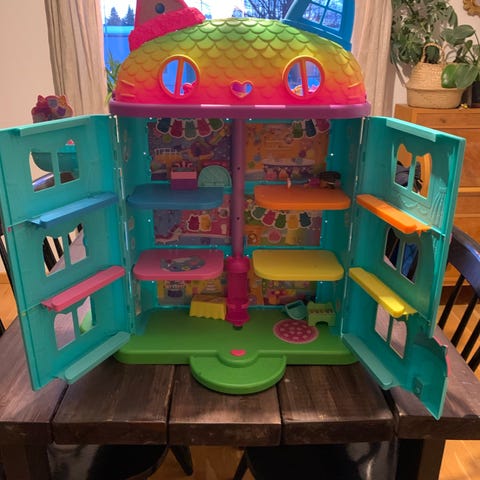 Gabbys dockskåp med flera rum och mycket tillbehör. Fint skick, sparsamt använt. Ljud och musik.
