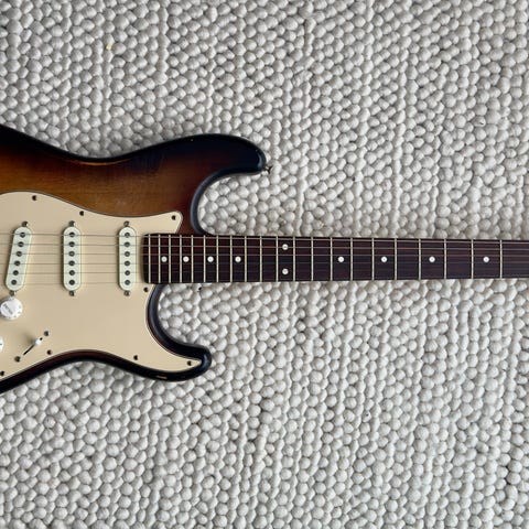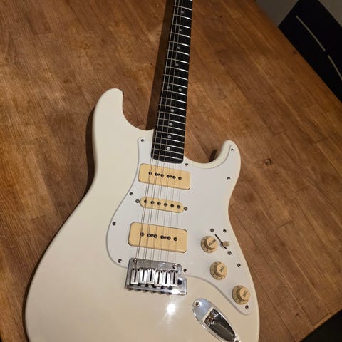 Den här gitarren har varit i min ägo sedan -86. Någon gång i min ungdom tyckte jag det var mer hårdrock med svarta mickkåpor så jag sprattlade dom i morsans kök vilket inte var så uppskattat, men det luktade ju gott tyckte jag. utöver det ingreppet så är gitarren utrustad som när den köptes. Lite sliten över lag såklart men fungerar som den ska. Denna modellen (JV-series) tillverkades mellan 82-84 om jag inte missminner mig. Köpte den av en jobbarkompis till min far som tyckte jag skulle ha "riktiga grejer" att lira på, sedan dess har den bott hos mig, men nu känner jag att den behöver gå vidare till förmån för andra gitarrköp.
