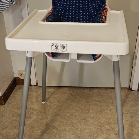IKEA Antilop matstol med avtagbar bricka och säkerhetssele.
