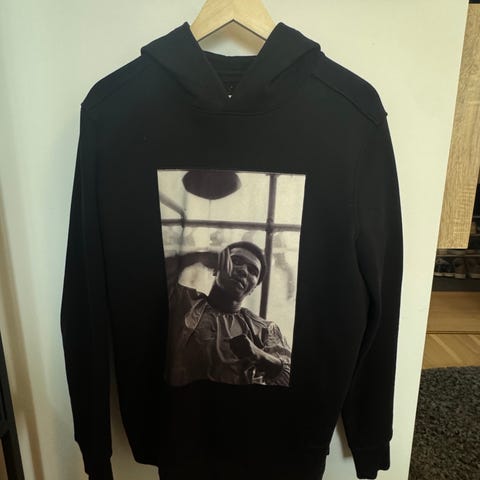 Zadig & Voltaire hoodie/huvtröja för herr i storlek L. Tillverkad i ull och kashmir. Svart färg. Har dragkedja och huva, samt en tryckt dödskalle på framsidan. Otroligt bra kvalite. Topskick - endast använt den en eller två gånger. Finns att hämta i Vasastan men kan skickas med. Tror nypris låg runt 4600kr.