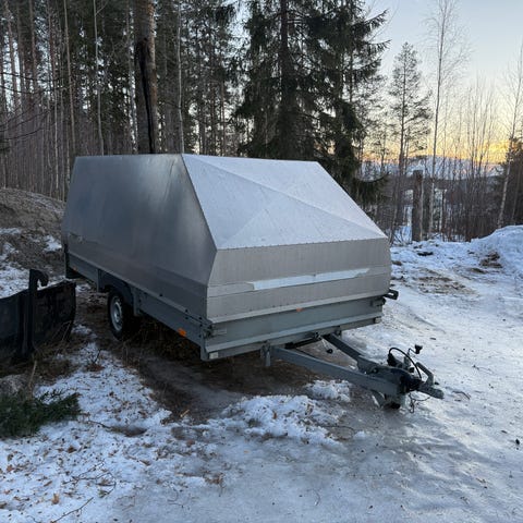 Då var det dags att sälja kåpvagnen pga av nyinköp. Varit i min ägo sedan 2013, rullar på och fyller sin funktion. Golvet är slitet (1,8x3,2m) och nån liten spricka i kåpan.