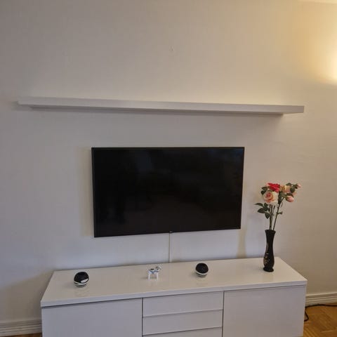 Vit Ikea ”Lack” hylla i fint skick. Hämtas i Älta. Betalning med Swish.