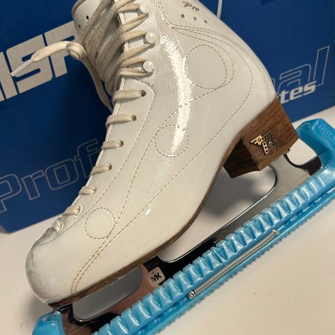 Risportkänga med pattern 99-skena. Strl 250. Du som köper är rimligen intresserad av skenan mer än kängorna, men sistnämnda medföljer naturligtvis, se skick på bilder (inte knäckta). Skenan måste slipas men har använts för dubbel- och trippelhopp och byttes slutligen ut pga justering av skridskostorlek. Hämtas i Sävedalen eller tas med till centrala Göteborg. Kan även skickas mot fraktkostnad.