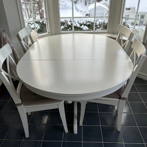 Säljes ett vitt köksbord Liatorp Ikea. Det är helt och i användbart skick. Stabilt och smidigt.