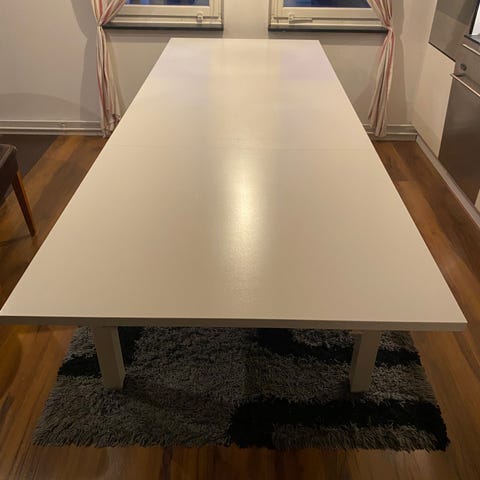 En iläggsskiva finns vilket gör att bordet blir 155 cm Några små skav