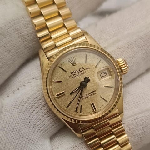 Full service gjord 2024 på Rolex i Schweiz med komplett reperation: nya packningar, urtavla, visare, krona, plexiglas, polering, täthetstest samt byte av diverse skadade verkdelar. Papper finns.