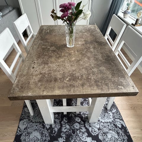 Vit matgrupp med bord och 6 stolar