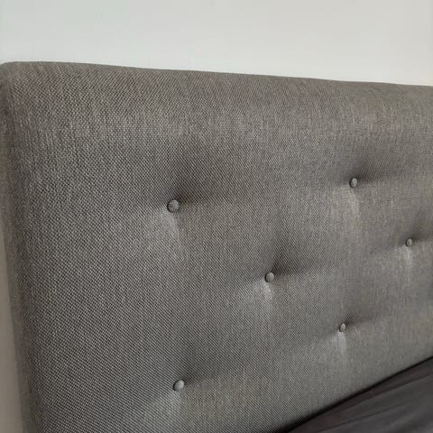 Jotex sänggavel i ljus färg. Passar som tillbehör till säng för att ge stöd och komfort vid sängens huvudände.