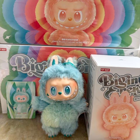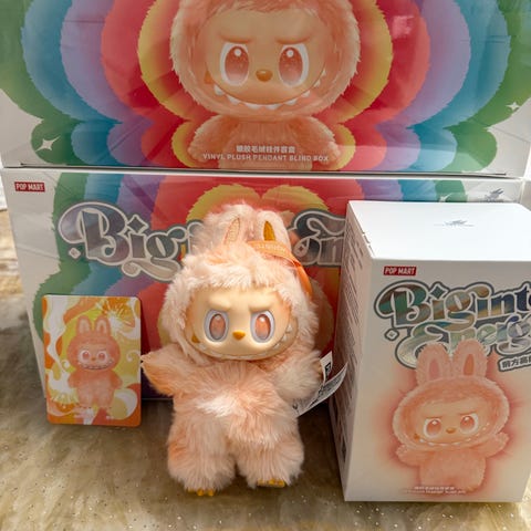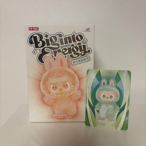 Labubu big into energy helt ny endast öppnad från sin förpackning för att se färgen. Den har endast legat i sin låda så den är helt ny. Allt medföljer, kartong kort påse mm.