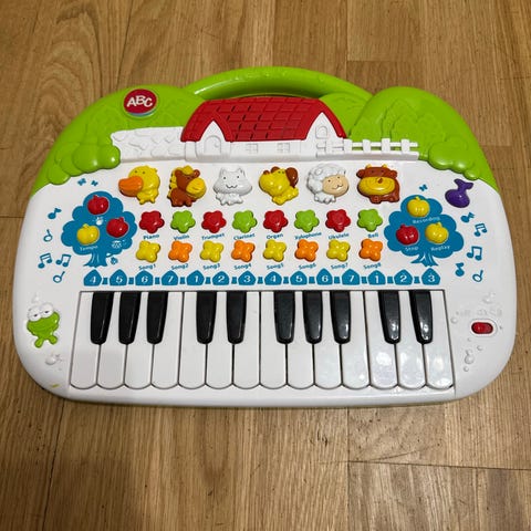 Ett mindre piano som ser ut som ett riktigt traditionellt piano. Köpte det för 300 kr och min dotter verkar inte vara så intresserad, så säljer det vidare för samma pris.