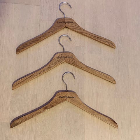 galgar i ljust trä med metallkrokar