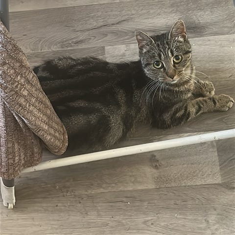Hanen (bruna) älskar att kela medans honan (gråa) är lite mer självständig men kan komma och lägga sig i knät om tillfället slår henne.