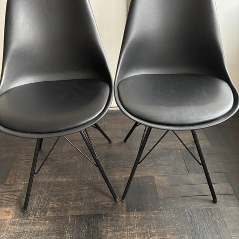 Svart konstläder med kromade medar som passar perfekt till de flesta matbord och ger ett modernt intryck.