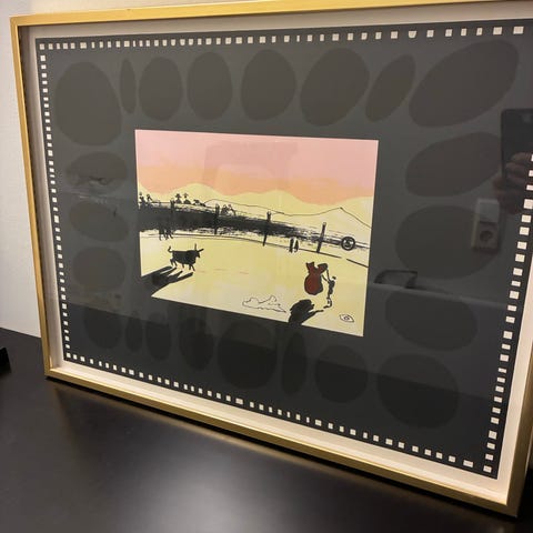 Inköpt på auktion. Ramen är vitmålad.