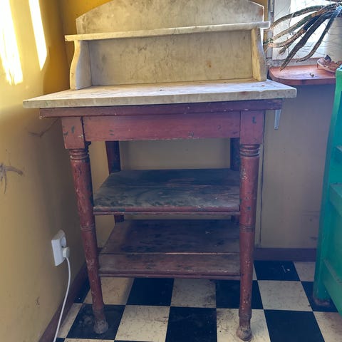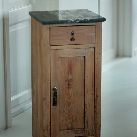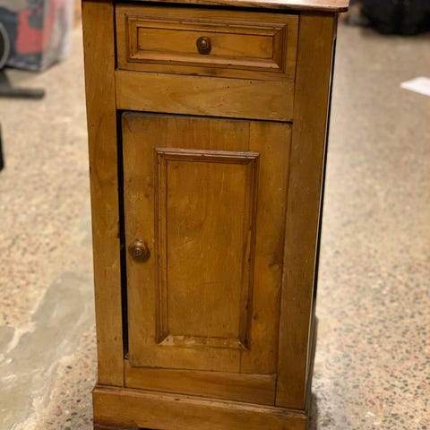 Antikt sängbord/sidobord/pottskåp i trä och marmor