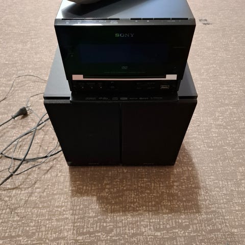Ljudsystem från LG, högtalare i bra skick och musikspelare som bland annat spelar CD/Dvd, via USB eller AUX (se bild på baksida för andra portar)