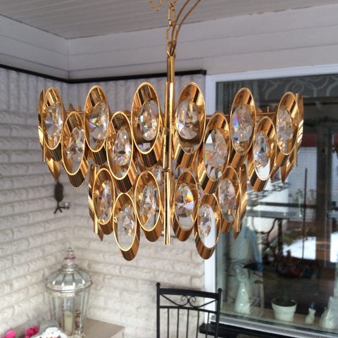 taklampa i kristallglas och metall mässing