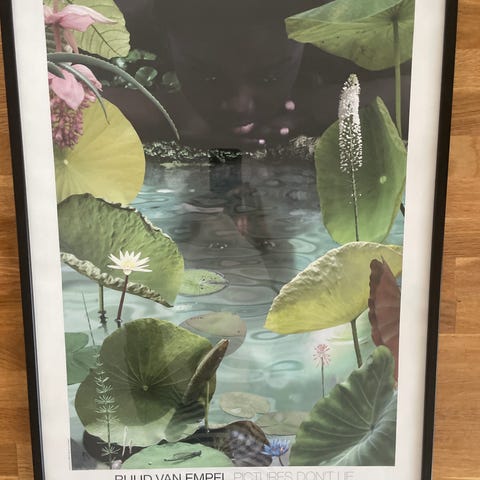 Konsttryck med titeln Jordens barn, numrerad 83 av 300. Trycket visar en konstnärlig bild med jordklotet och händer, inramad under glas.